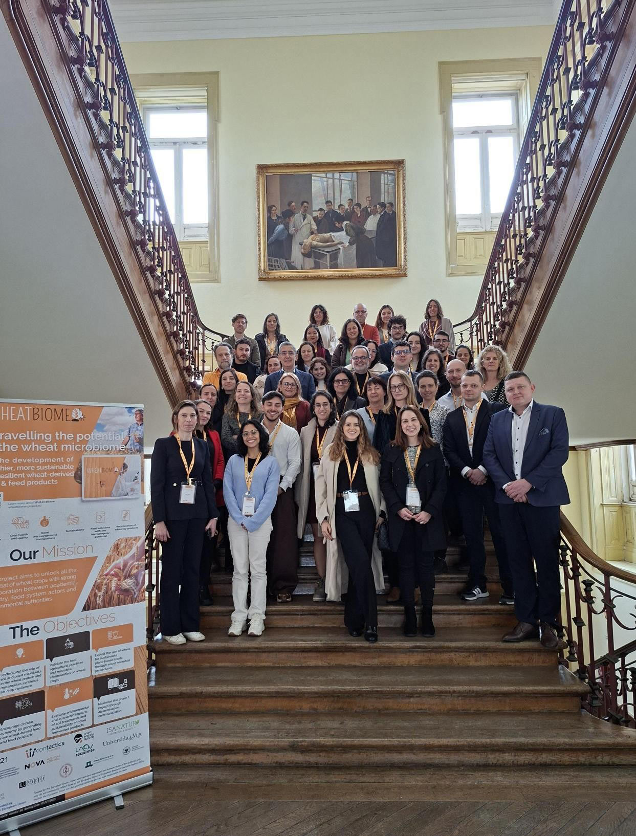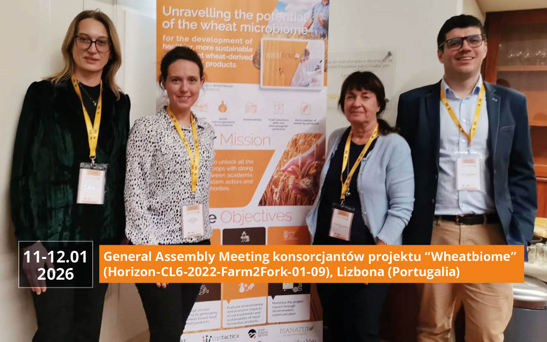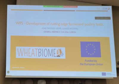 W dniach 11- 12 stycznia 2026 r. pracownicy  naukowi IBPRS-PIB: dr inż. K. Piasecka Jóźwiak, dr inż. R. Choińska, dr inż. Ł. Woźniak oraz dr inż. J. Szczepańska-Stolarczyk, uczestniczyli w spotkaniu roboczym projektu Wheatbiome (Horizon-CL6-2022-Farm2Fork-01-09) finansowanego przez UE. Spotkanie o charakterze roboczym odbyło się na terenie NOVA Medical School w Lizbonie (Portugalia). Podczas spotkania koordynatorzy poszczególnych WP (Workpackages) zaprezentowali i omówili wyniki przeprowadzonych dotychczas prac badawczych w ramach projektu. Zespół IBPRS-PIB jest liderem WP5 (koordynator: dr inż. Ł. Woźniak), którego zadania obejmują: opracowywanie nowych receptur pasz dla drobiu, które w swoim składzie będą zawierać dodatek uzyskany w wyniku fermentacji substratów pszenicznych oraz ocenę jakości i bezpieczeństwa opracowanych nowych materiałów paszowych.
