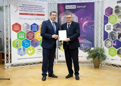 Dyrektor Generalny MRiRW dr Marek Cieśliński zwrócił uwagę na unikatowość IBPRS-PIB na tle innych instytutów nadzorowanych przez ministerstwo. Podkreślił szeroki zakres współpracy jednostki z przemysłem oraz jej wysoką skuteczność w pozyskiwaniu środków z otoczenia społeczno-gospodarczego.