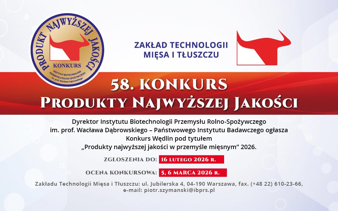 Dyrektor Instytutu Biotechnologii Przemysłu Rolno-Spożywczego im. prof. Wacława Dąbrowskiego – Państwowego Instytutu Badawczego ogłasza Konkurs Wędlin pod tytułem „Produkty najwyższej jakości w przemyśle mięsnym” 2026.